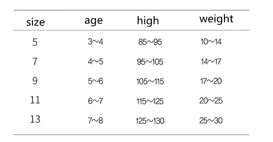 Suitable age: middle and small children (3~8 years old, 100~140cm)