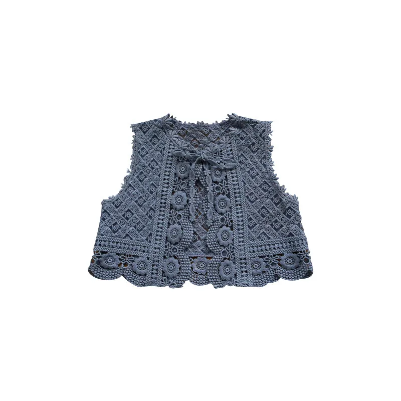 The Girls Wear A Vest with Hollow Flowers is a charming and stylish piece that combines a unique floral design with comfort and versatility.
