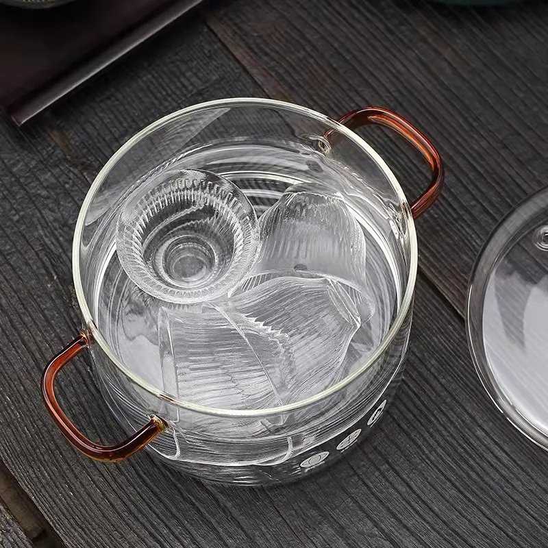 A glass saucepan with lid is a cooking pot made primarily from glass, designed for preparing a variety of dishes such as sauces, soups, and stews. The glass body provides the advantage of being non-reactive, which means that it doesn’t affect the taste or nutritional value of your food. The lid is typically made of tempered glass or a heat-resistant material like stainless steel, allowing you to cover the saucepan while cooking.
