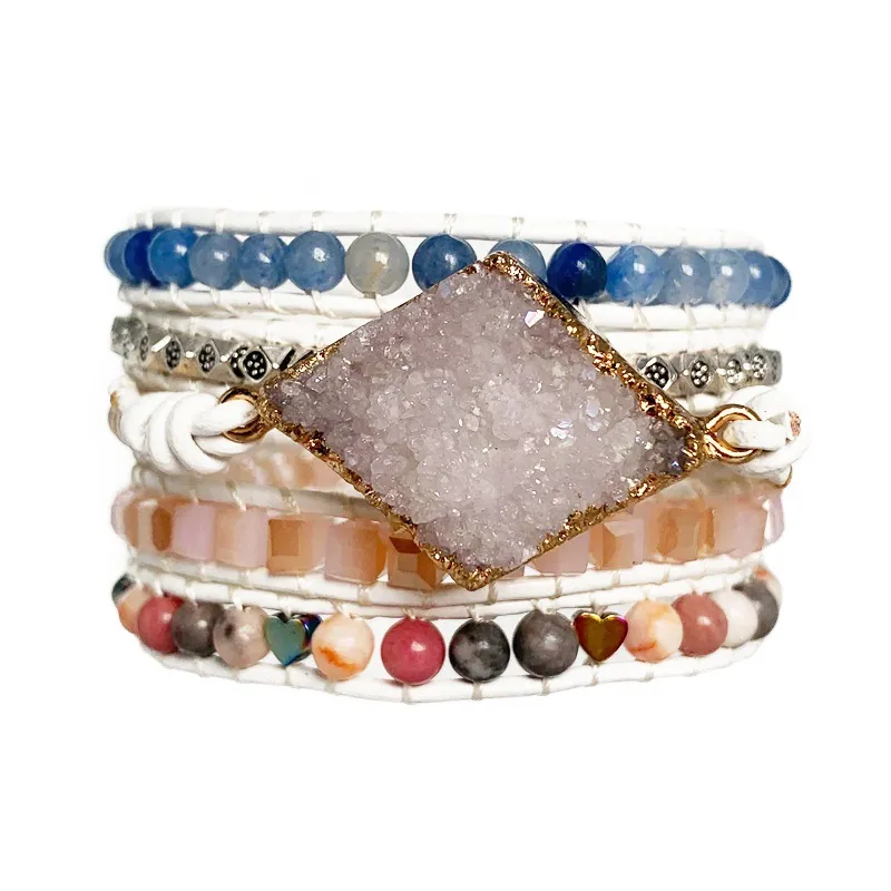 At the heart of this bracelet lies a natural geode, known for its intricate crystal formations and captivating patterns. Each geode is handpicked, ensuring that every bracelet is unique, with variations in shape, size, and crystal arrangement. The geodes used in this bracelet are not only visually stunning but are also believed to have healing properties, promoting balance, clarity, and positive energy.