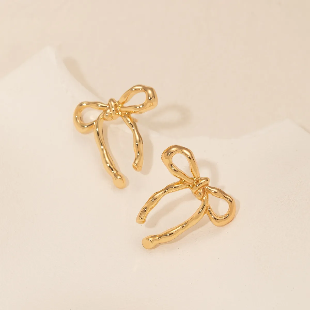 Gold Bow Stud Earrings Simple Fashion