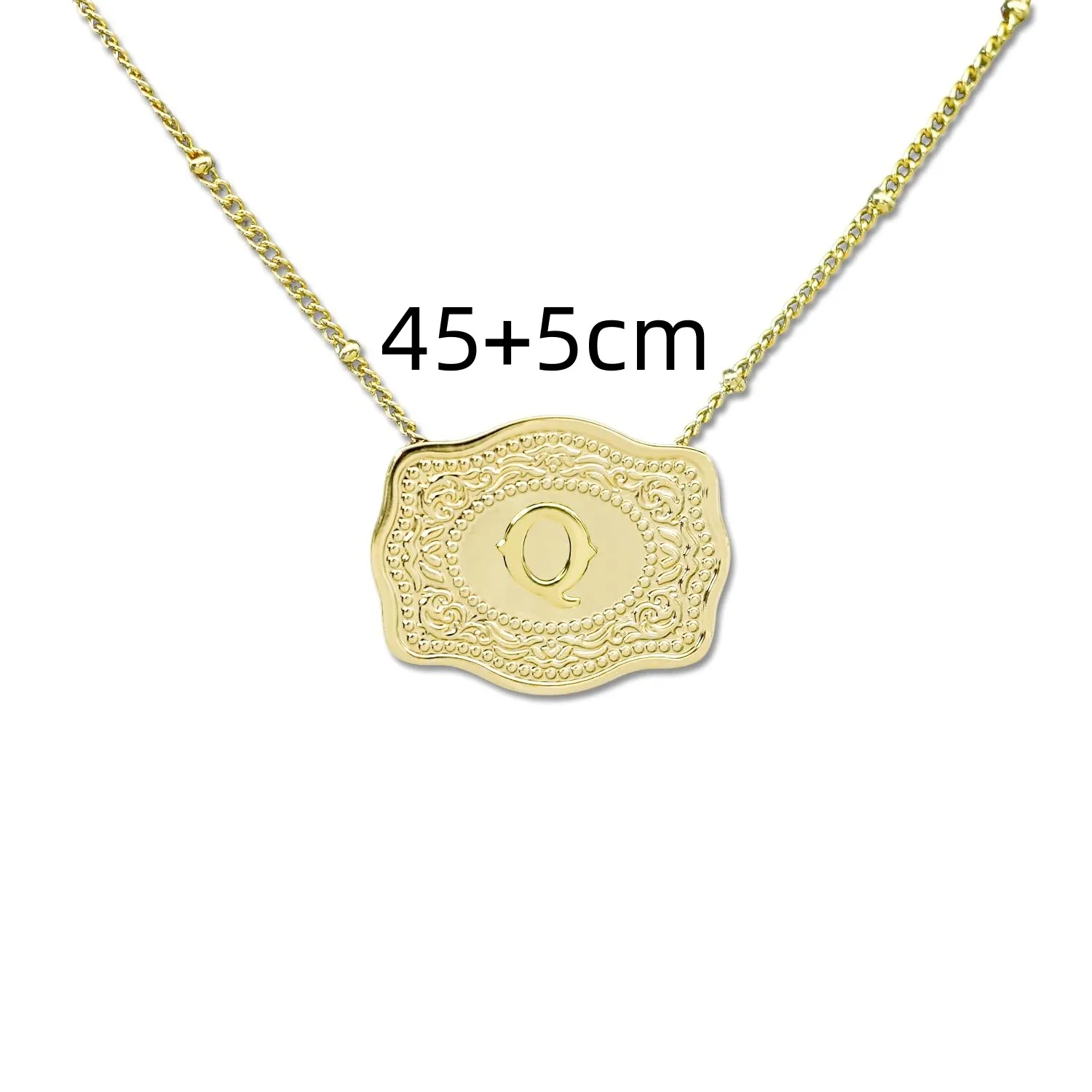 Featuring a slim chain with intricate embossed details, this necklace adds subtle sophistication to any outfit. Its minimalist design makes it suitable for casual, office, or evening wear.