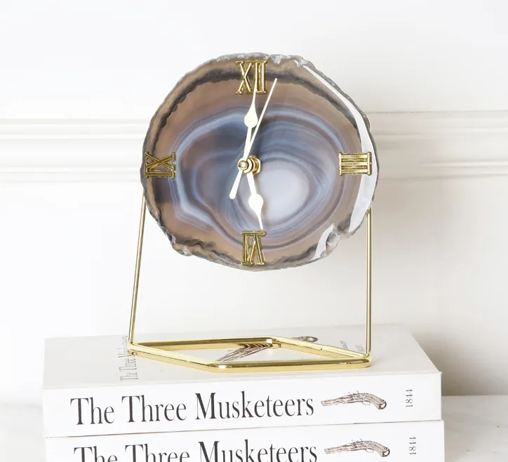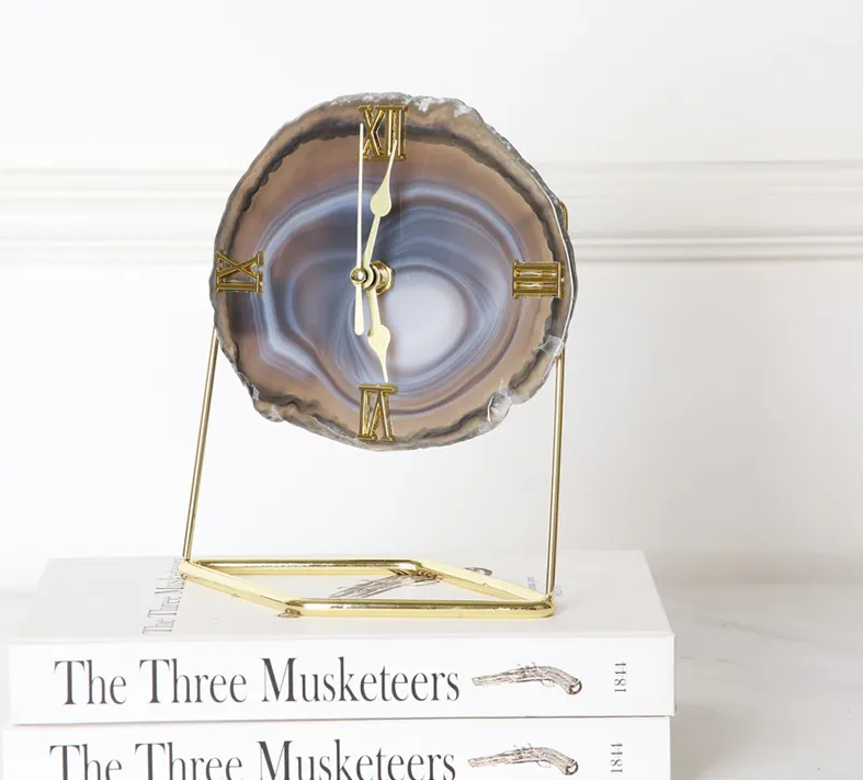 Golden Agate Stone Clock Decoration Fashion Living Room Model Room