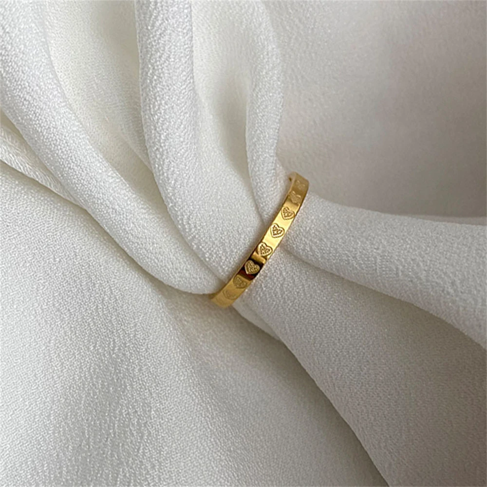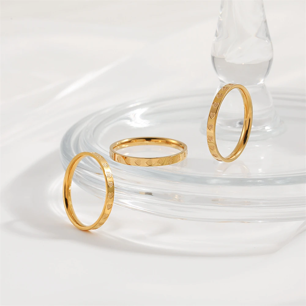 Golden Stainless Steel 2mm Heart Rings for Women