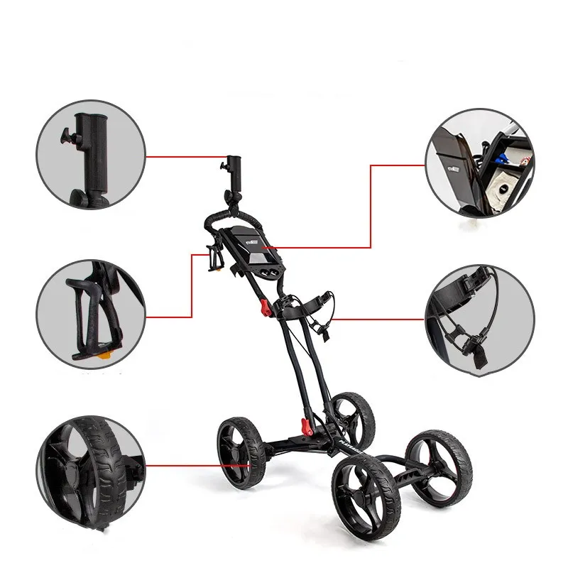 The Golf Course Cart Four Wheel Aluminum Alloy Foldable with Umbrella Rack is designed to elevate your golf game