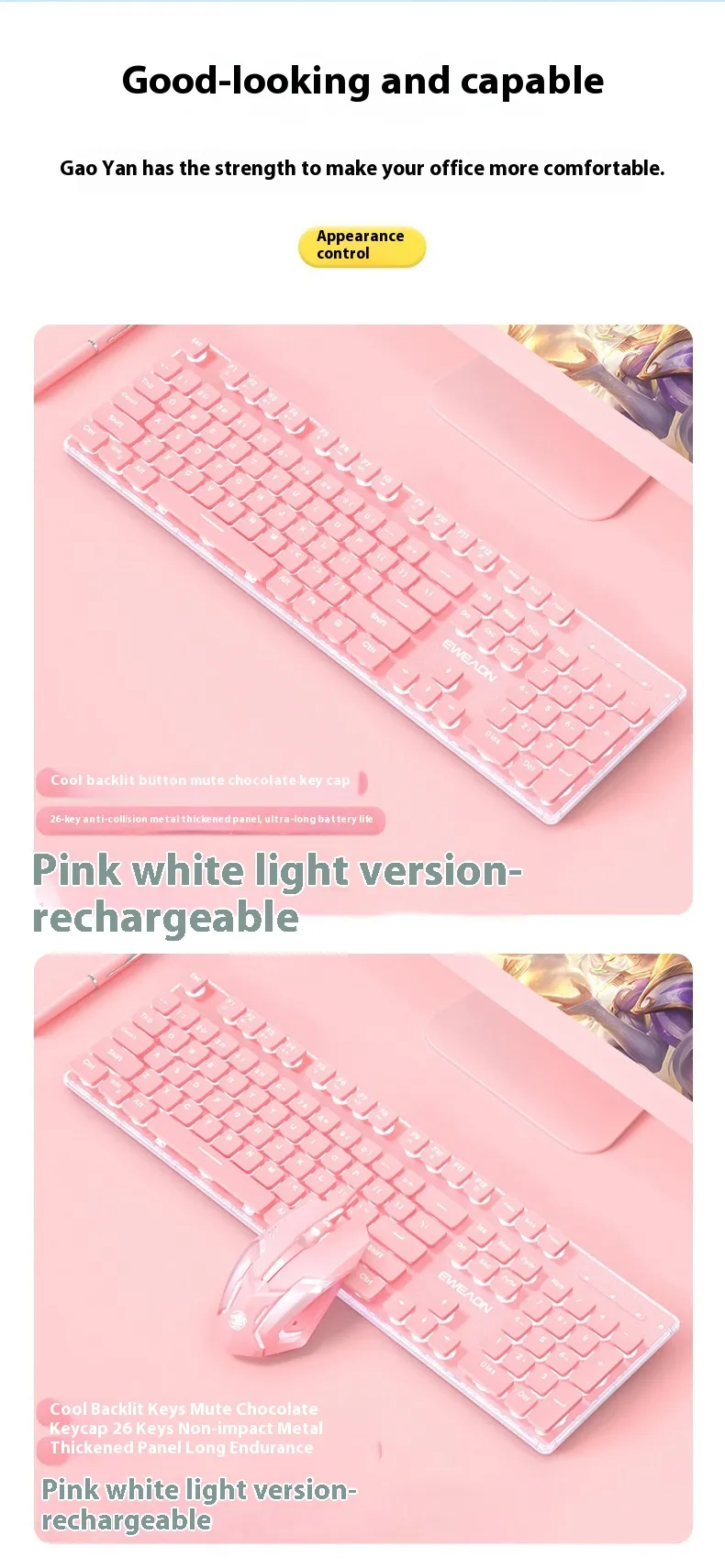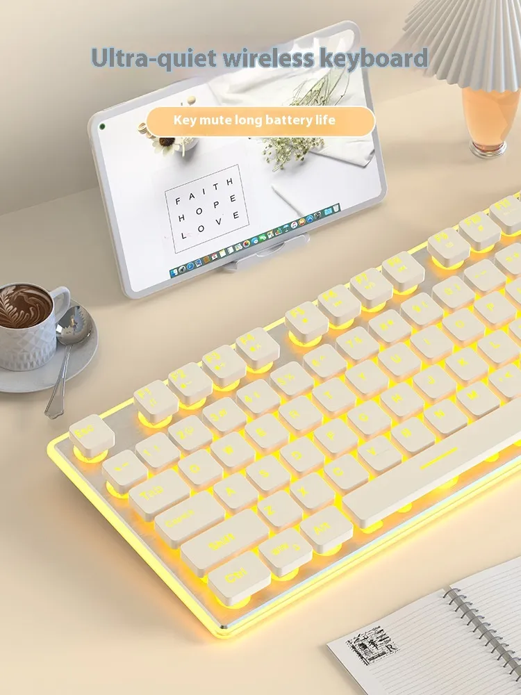 [Bluetooth key Mouse suit] milk white warm light✅Mute button can be connected to mobile phone tablet, white blue light [wireless Bluetooth