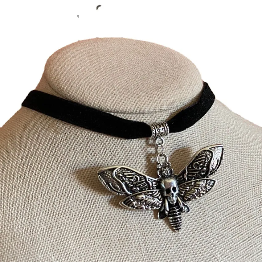Home › Plants, Gifts, Toys & More › Gift-tree-gothic-silver-skull-moth-pendant-necklace