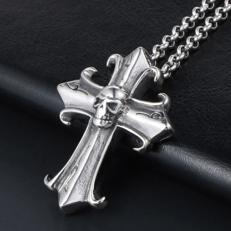 Home › Plants, Gifts, Toys & More › Gift-tree-gothic-vintage-cross-ghost-head-mens-titanium-steel-pendant-necklace-fashion-fashionmonger-punk-jewelry
