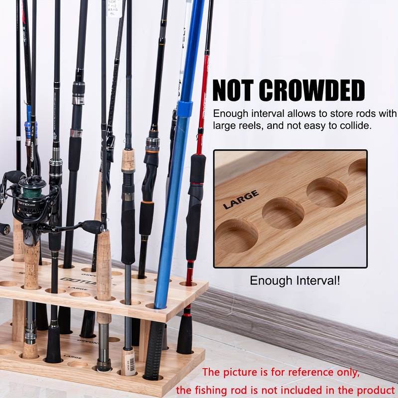 With 16 dedicated slots, this fishing rod holder can accommodate up to 16 rods, helping you organize your collection and keep your fishing gear in optimal condition. The sturdy wooden construction ensures the holder can support the weight of your rods, keeping them securely in place and preventing accidental damage.