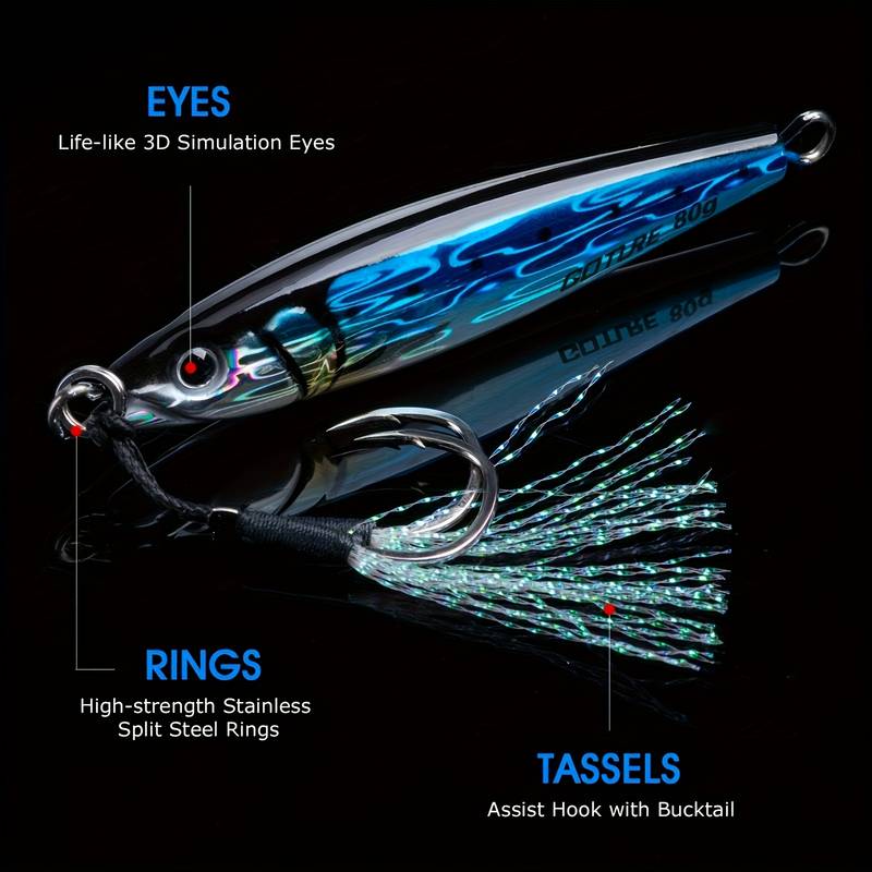 Whether you're fishing from a boat, pier, or shore, these jigs are perfect for deep-sea and vertical jigging, providing a versatile solution for different types of fishing environments. Their weight range ensures that you can fish at various depths and conditions, making them a reliable choice for any fishing situation.
