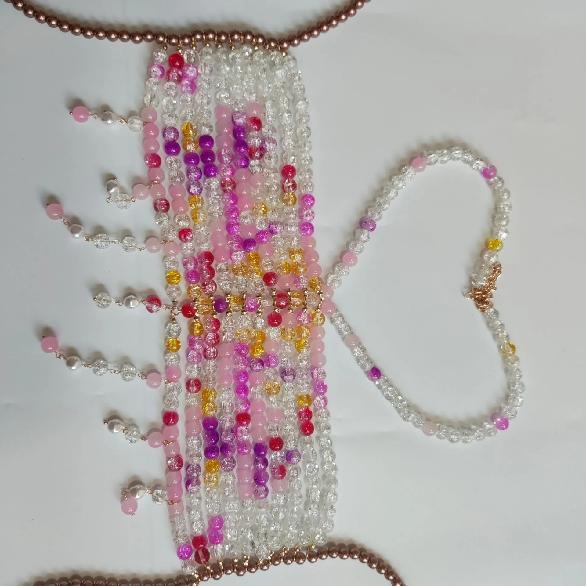 Gradient Color Glass Beaded Chest Necklace Heavy Industry Colorful Beads Body Chains