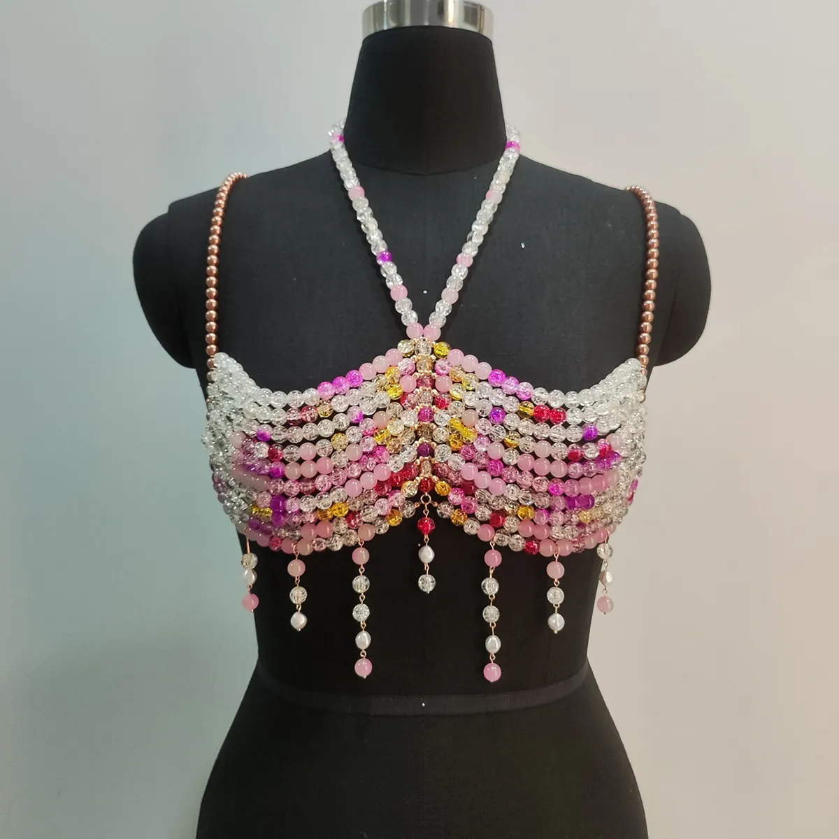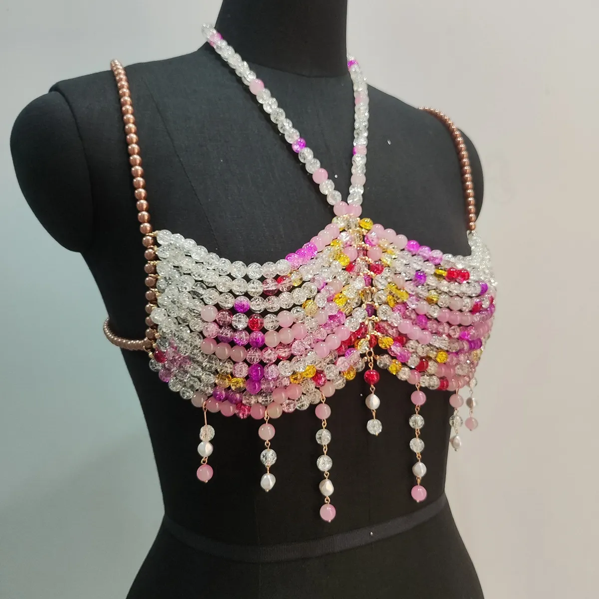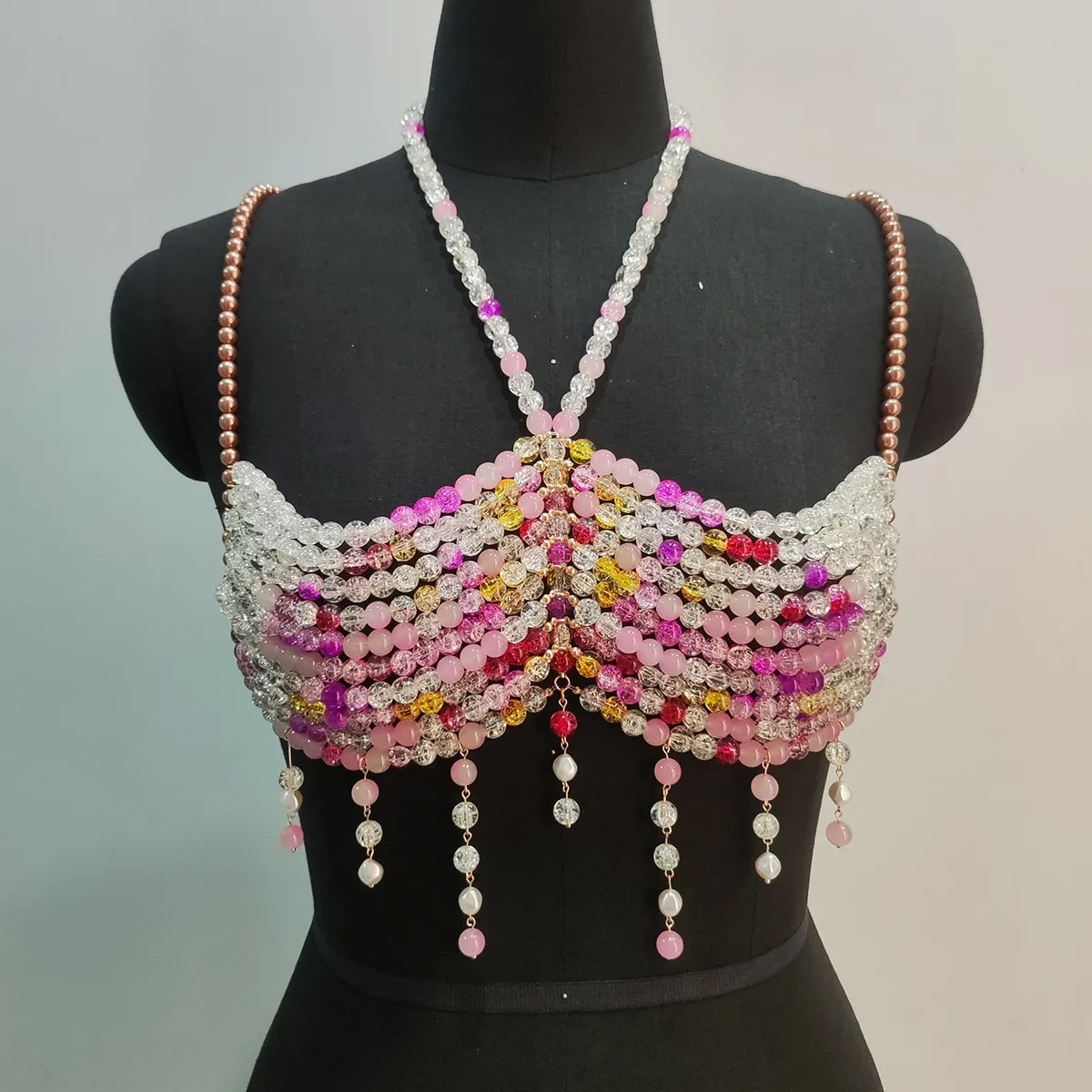 Discover Gradient Color Glass Beaded Chest Necklace: Heavy Industry Colorful Beads Body Chains