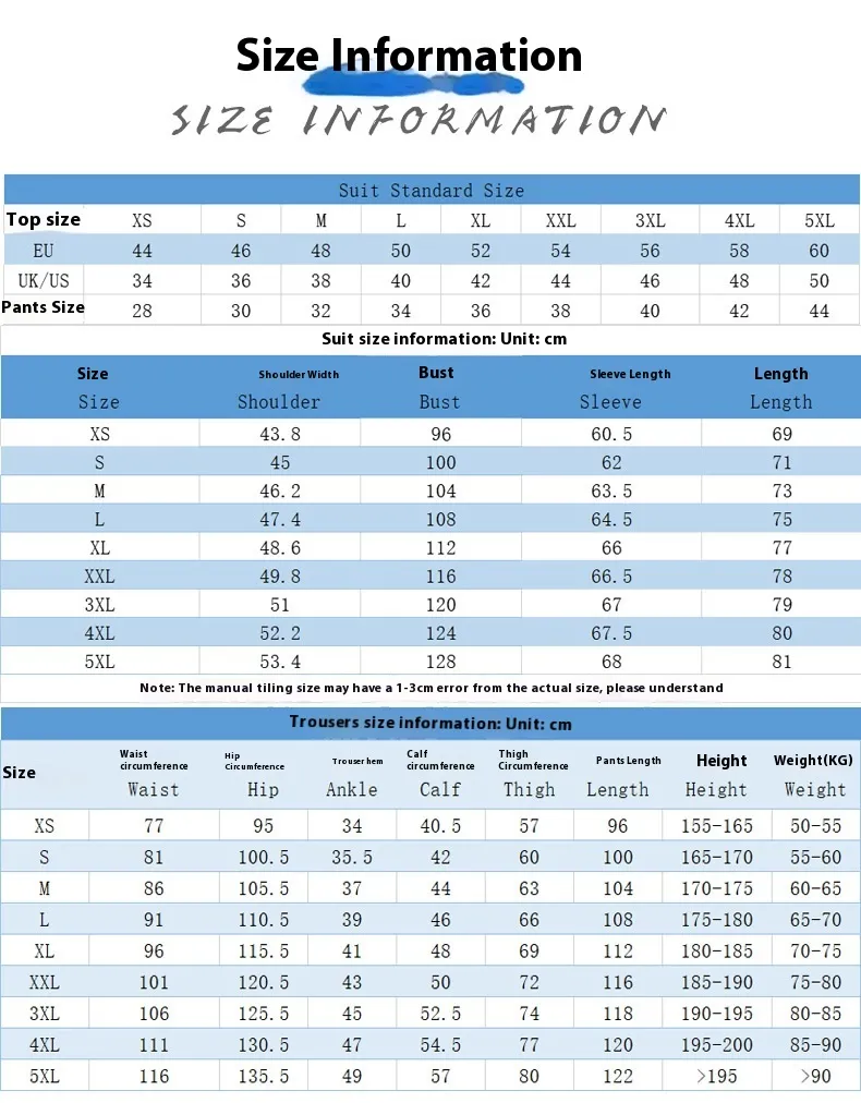 Three-Piece Set: Includes a tailored suit jacket, vest, and trousers, offering flexibility in styling and pairing.