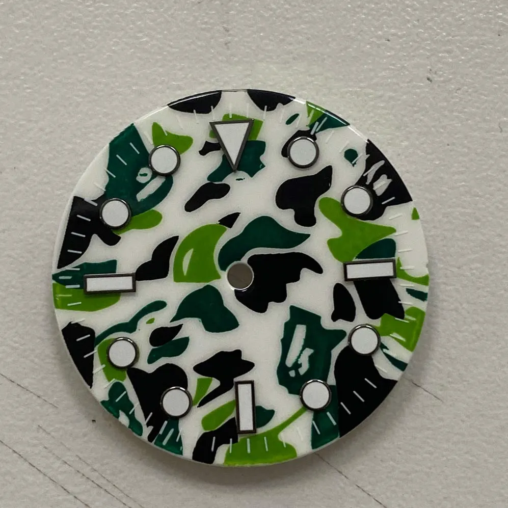 Green luminous camouflage watch accessories are specially designed components made to complement watches, enhancing their aesthetics and functionality. These accessories often include watch straps, bands, cases, bezels, and even dial designs with a camouflage pattern that incorporates shades of green, ideal for a military or tactical-inspired look.