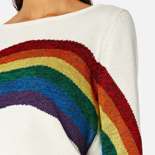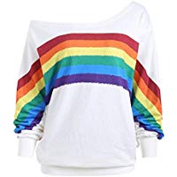 Eye-Catching Rainbow Design: A bold and colorful rainbow graphic across the chest adds a cheerful, vibrant touch to the