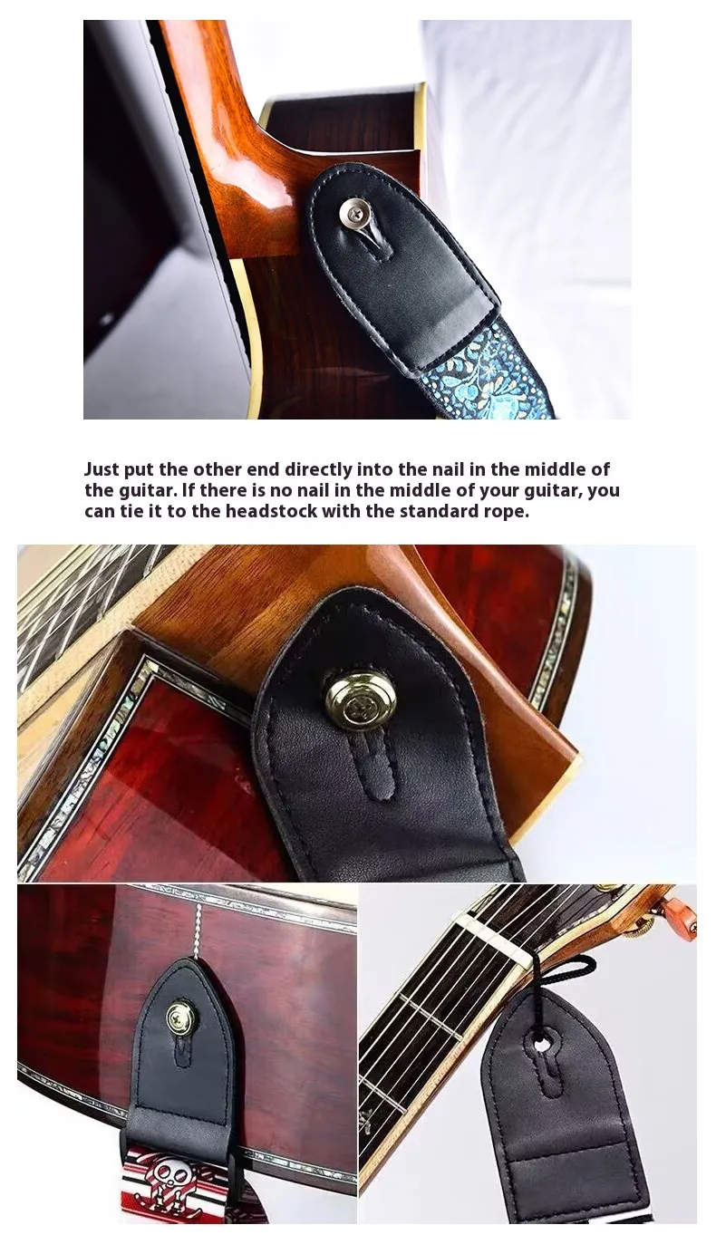Simply attach the leather strap ends to your guitar’s strap buttons. The leather loops are reinforced to prevent accidental detachment during use. Adjust the length with the sliding buckle to your preferred fit.