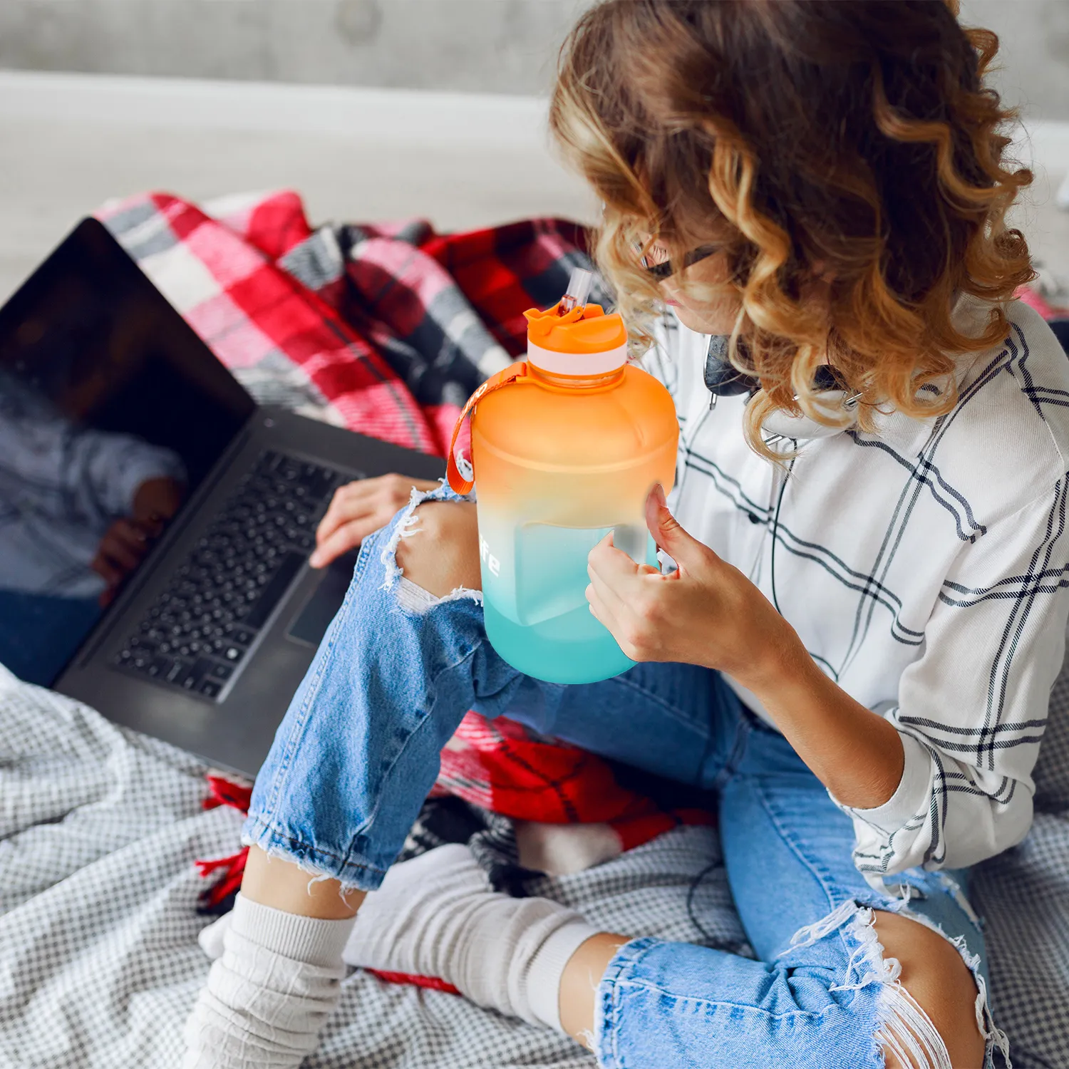 Portable and Lightweight: Despite its large size, the water bottle is designed to be portable and lightweight, making it