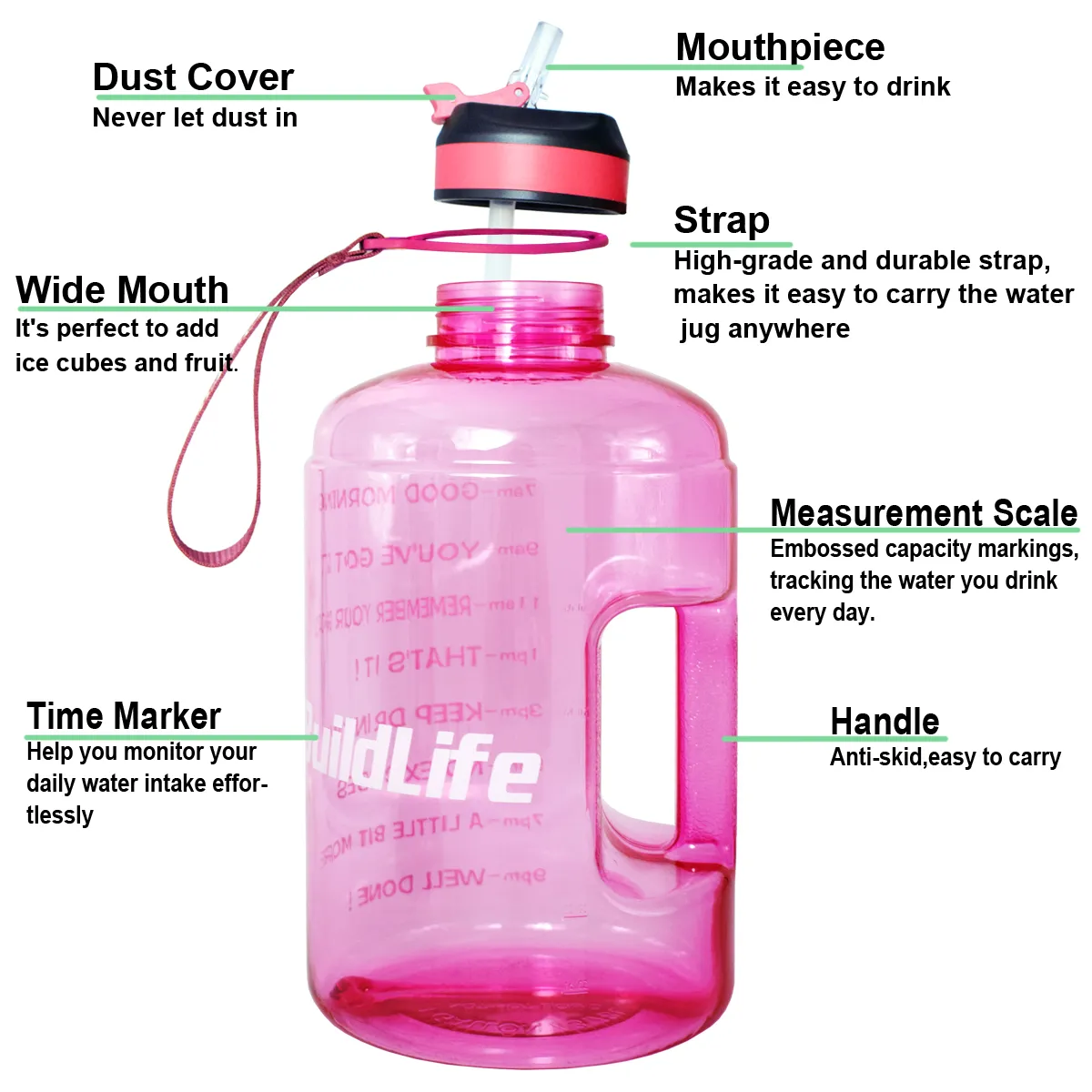 Encourages Healthy Hydration: Having a gallon-sized bottle helps you easily meet your daily hydration needs, promoting