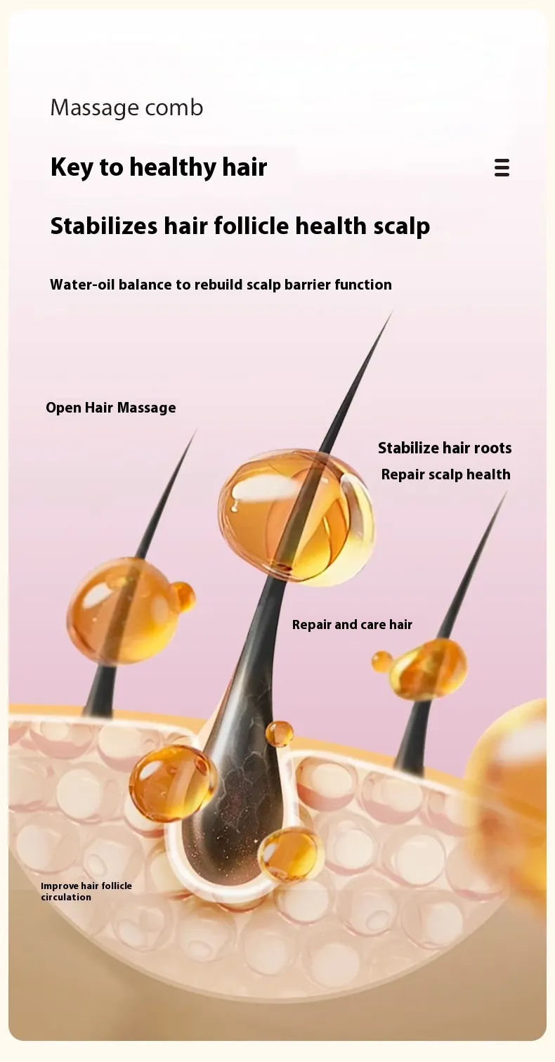 Scalp Massage for Improved Circulation: The ergonomic design of the comb is equipped with gentle massage nodes that help