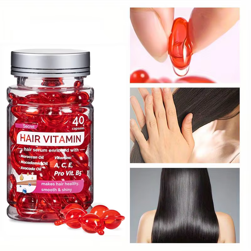 Nourish and revitalize your hair with the Hair Vitamin Serum Capsule, a powerful no-rinse hair mask treatment enriched with Moroccan, jojoba, and soybean oils, plus essential vitamins A, C, and E. This serum provides deep hydration and nourishment, helping to repair and protect hair from damage while promoting shine and softness. Ideal for all hair types, it strengthens and revitalizes hair, leaving it smooth and manageable.