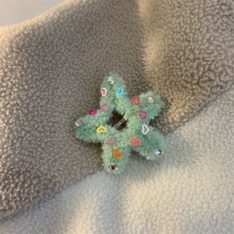 Hairy Hair Clip Diamond-encrusted Five-pointed Star Edge Clip Bangs Clip Headwear