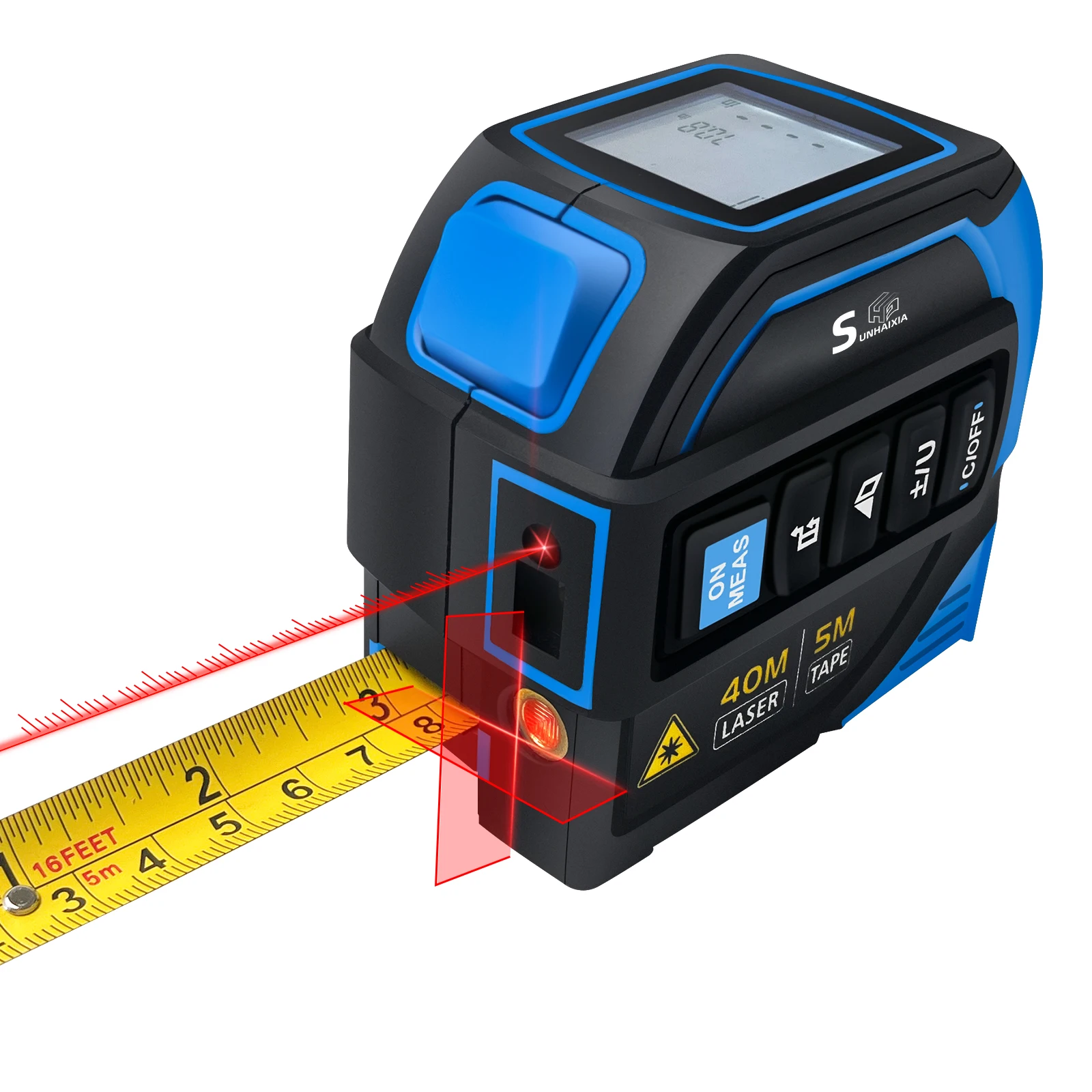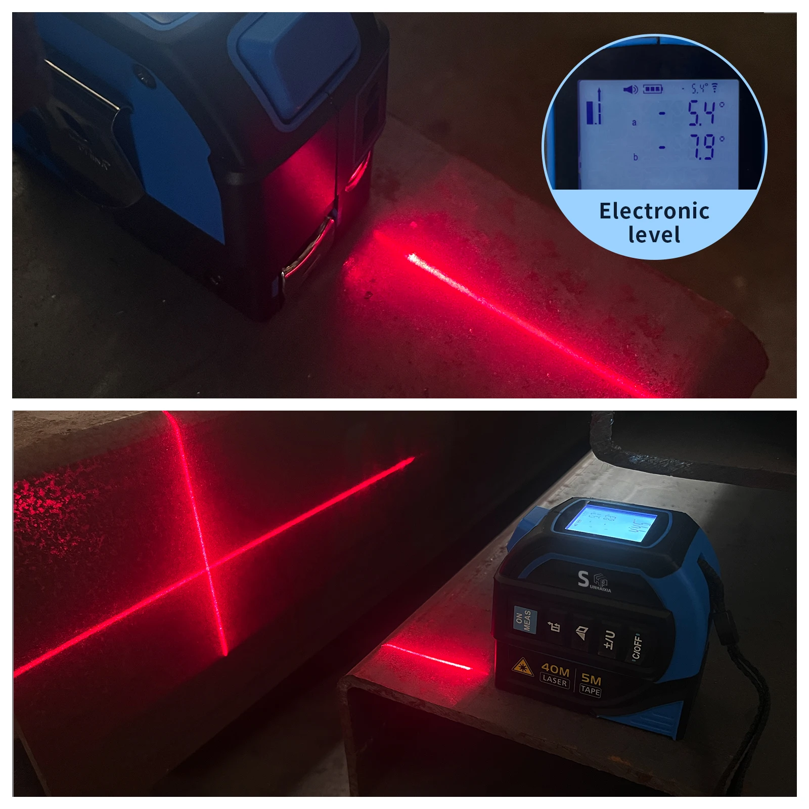 The high-precision laser meter provides accurate readings for distances up to 40 meters, perfect for professional and DIY use.