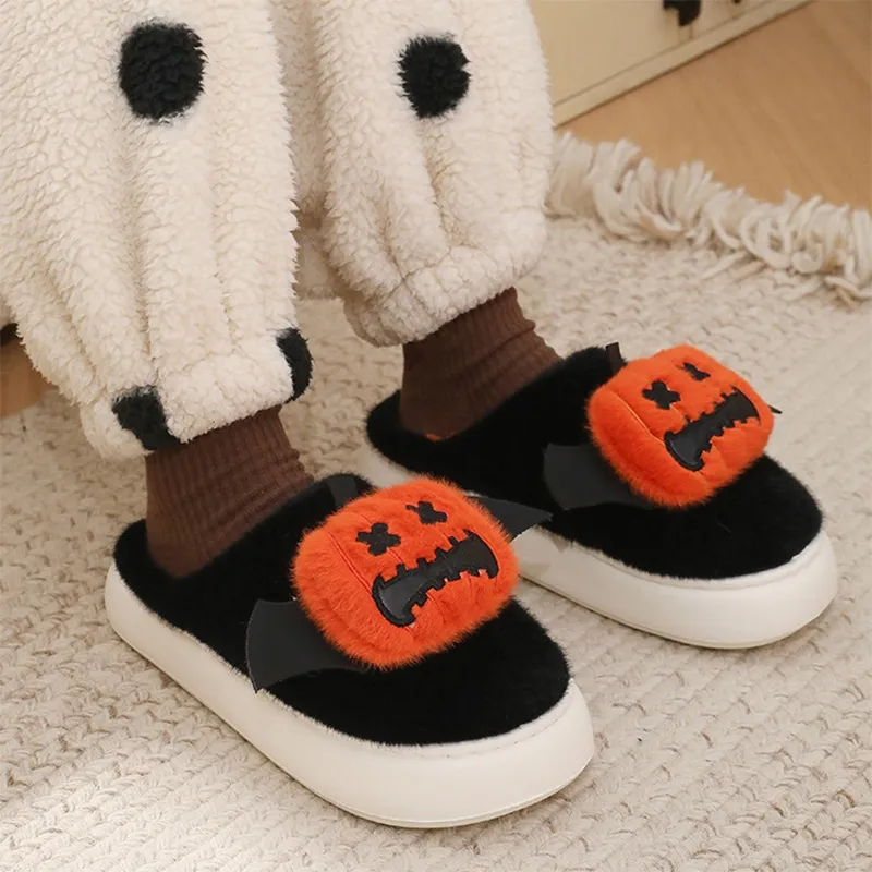 Halloween Cartoon Funny Pumpkin Slippers With Small Wings