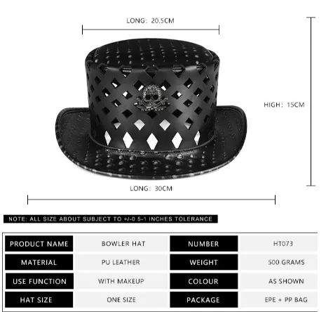 Add a touch of eerie sophistication to your Halloween or cosplay outfit with the PU Leather Plague Doctor Hat. Inspired by medieval plague doctors, this high-quality topper is crafted from durable materials and designed to complement costumes for Halloween, theatrical performances, or themed events. Its unique shape and sleek finish make it an ideal accessory for those who love immersive and dramatic roleplay.