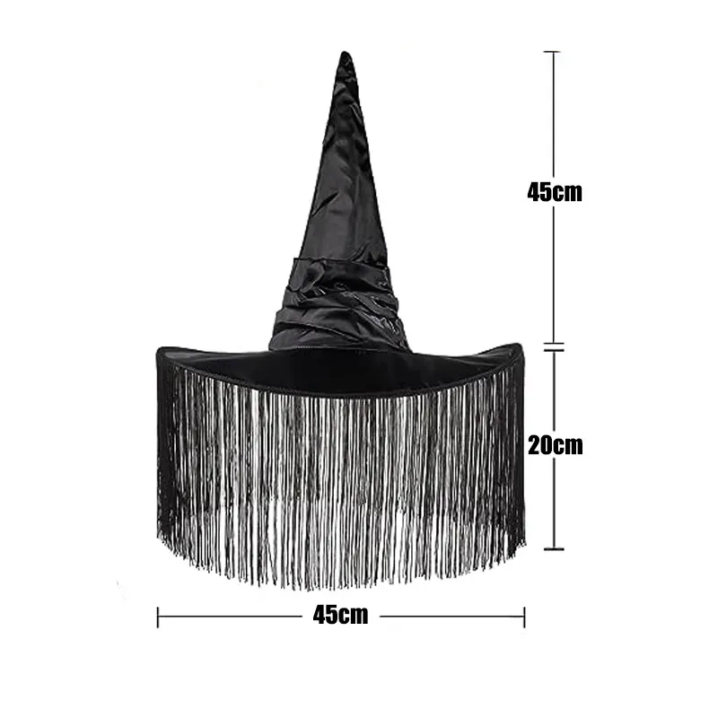 Complete your Halloween look with this pleated tassel witch hat, a must-have accessory for any spooky celebration. Whether you're dressing up for a costume party or enhancing your makeup with a magical touch, this witch hat adds the perfect blend of elegance and mystery. Featuring a unique pleated design and stylish tassels, this hat is crafted from high-quality materials for durability and comfort. The lightweight fabric ensures a comfortable fit, making it easy to wear throughout the night while casting your spell.