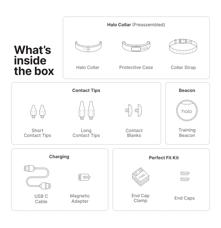 Sizing Information – The Halo Collar fits dogs 20+ lbs with a neck size of 11″-15″ for Small and 15″-30.5″ for Medium/Large. If your dog is in between sizes, we recommend getting the larger size. Only for dogs 5+ months. Your Halo Collar comes with step-by-step instructions for how to tailor the collar to your dog for a perfect fit.