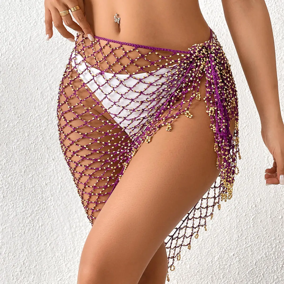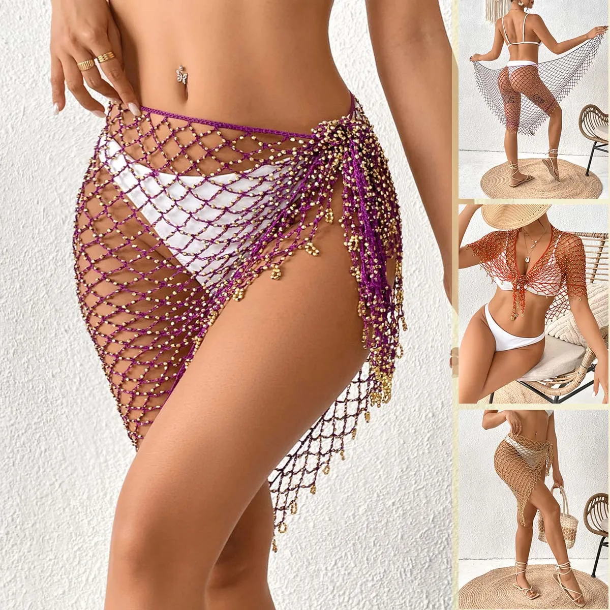 Elevate your beachside charm and summer fashion with our Hand Crocheting Bead Shawl Bikini Triangular Binder, a stunning accessory designed to bring boho-chic elegance and playful sophistication to your beachwear.