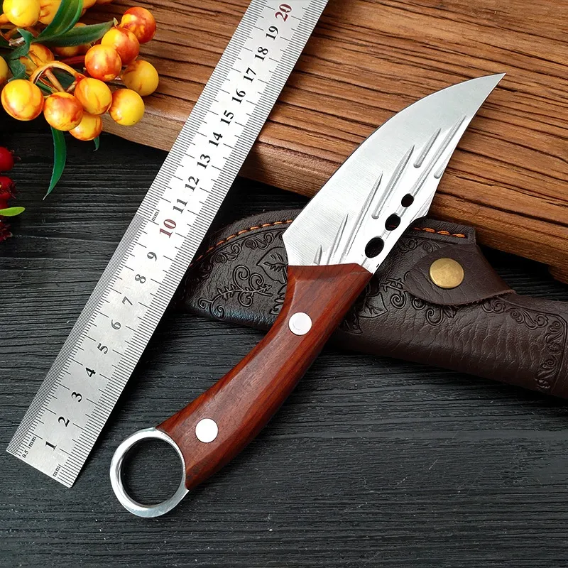Crafted with high-quality materials, this knife is designed to last. The hand-forged stainless steel blade is strong enough to withstand heavy-duty tasks, while the ring handle adds a layer of resilience and comfort. The knife's durable design makes it resistant to wear and tear, ensuring it remains a reliable tool for years to come.