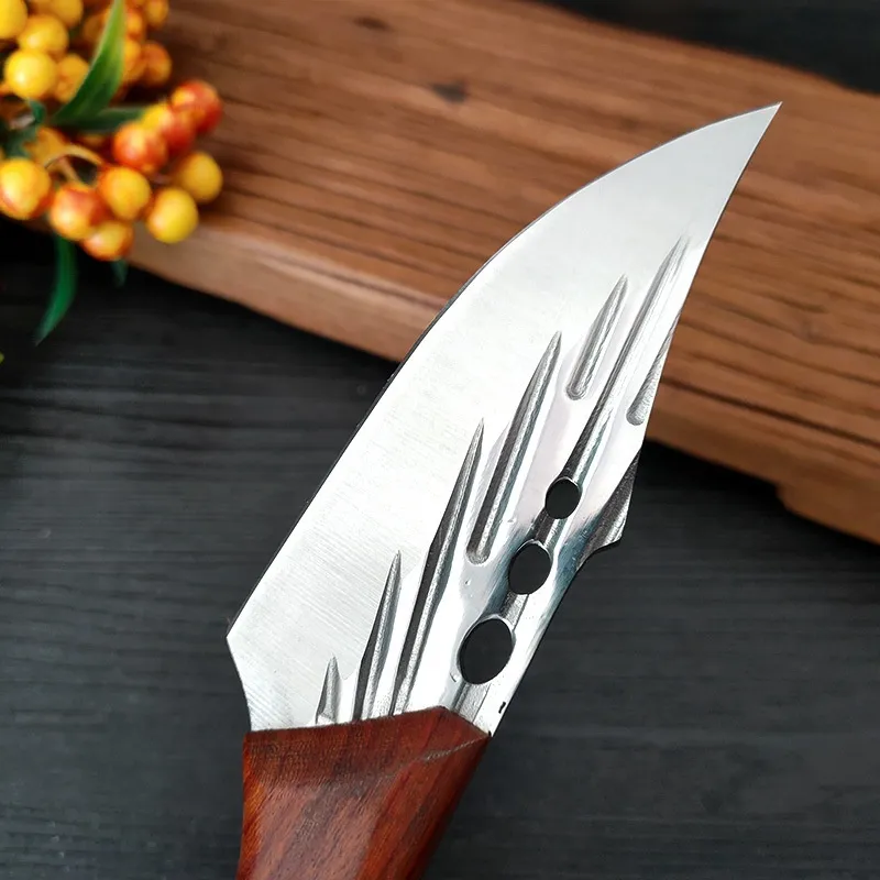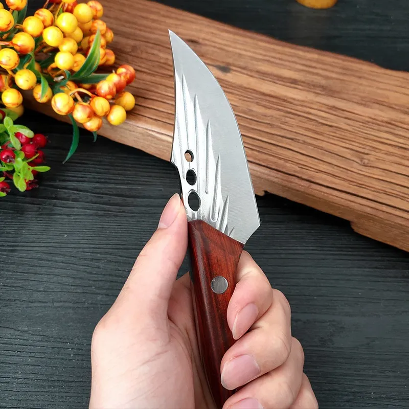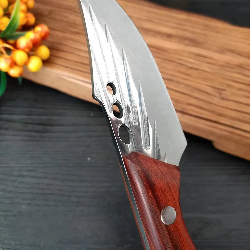 The stainless steel blade of this knife is hand-forged, ensuring exceptional durability and sharpness. Hand-forging enhances the strength of the blade, creating a knife that is not only resistant to corrosion but also maintains its sharp edge over extended periods. The meticulous forging process ensures that each blade has a unique pattern and design, making every knife one-of-a-kind.