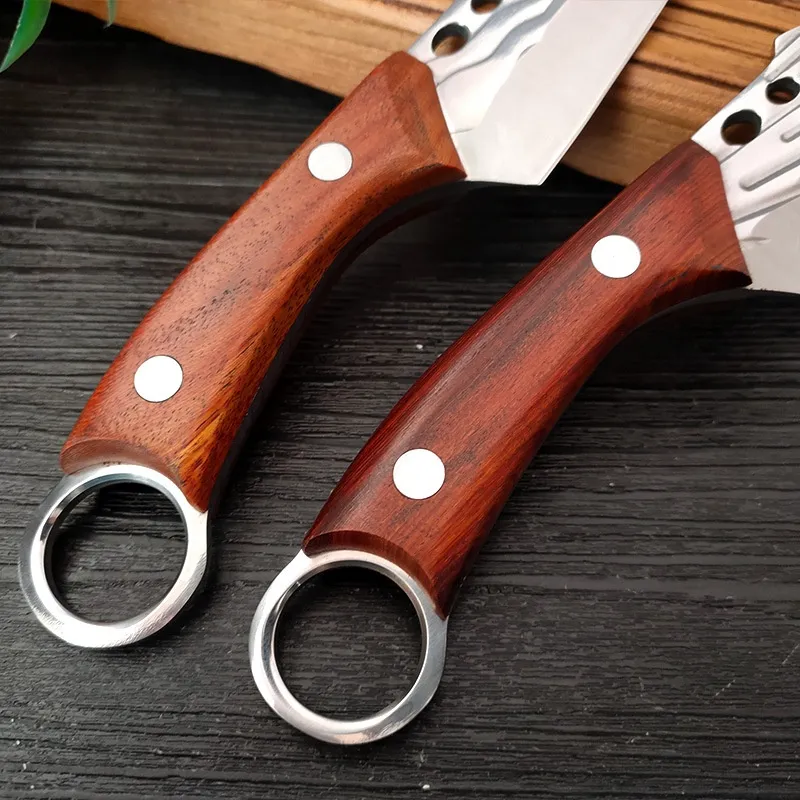The Hand-forged Stainless Steel Ring Handle Knife is a work of art, designed for those who appreciate the fusion of functionality, beauty, and craftsmanship. This unique knife features a hand-forged stainless steel blade paired with an eye-catching ring-shaped handle, making it not only a versatile tool but also a conversation piece. Whether you’re a professional chef, an outdoor enthusiast, or a collector of fine knives, this hand-forged knife is built to impress and perform.