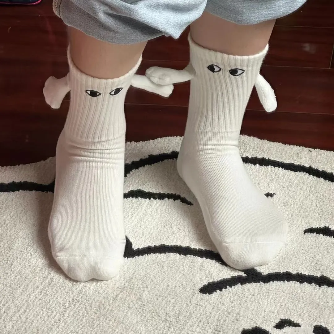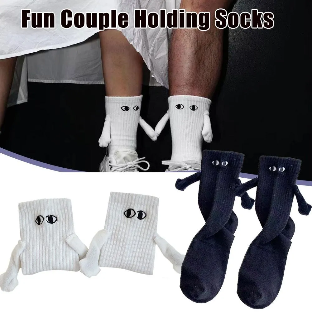 Connect in a fun and whimsical way with magnetic hands that join when standing side by side. Cute eye designs add character and playfulness. Let your socks reflect the joy and happiness you share with your loved one!