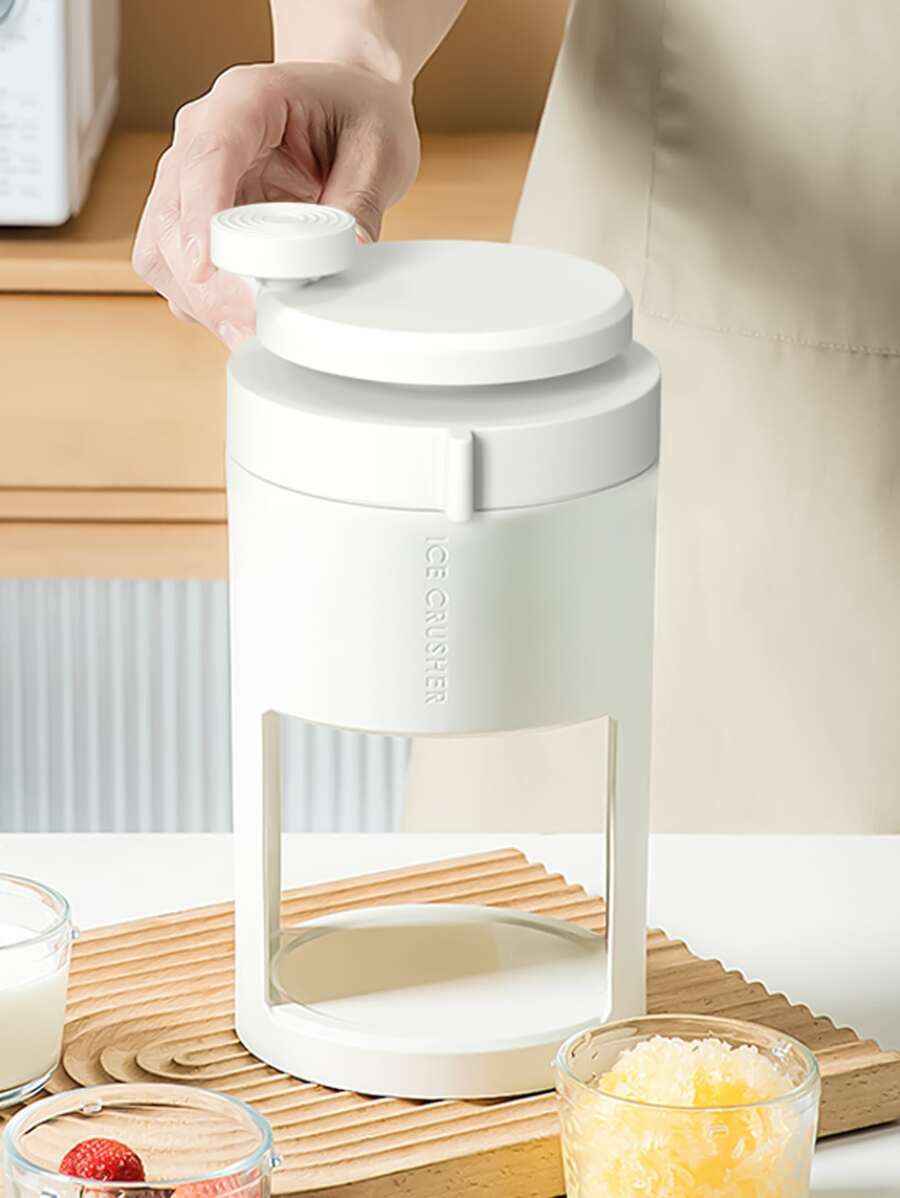 Kitchen gadget: portable hand crank does not require electricity. uses special ice molds, when ice is shaved by less resistance, will be