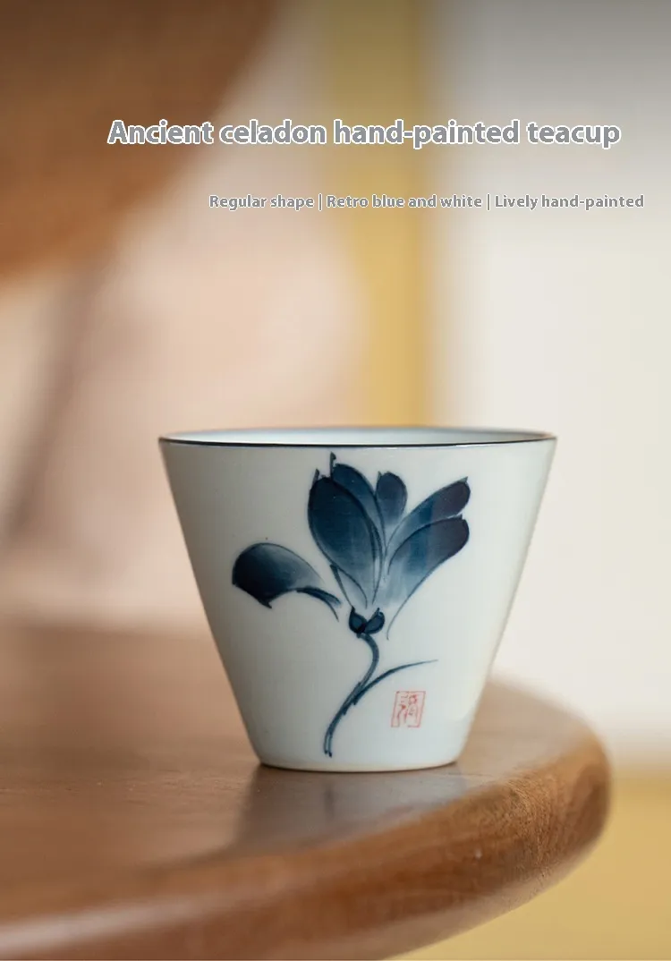 The teacup's design draws inspiration from the classic blue and white porcelain, featuring delicate hand-painted patterns that evoke a sense of nostalgia and elegance. The intricate motifs not only enhance the visual appeal but also reflect the deep cultural significance of tea in Chinese traditions.