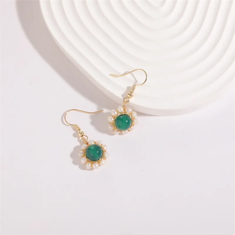 Key Features of the Hand-wound Water Pearl Earrings with Natural Stone Emerald Green