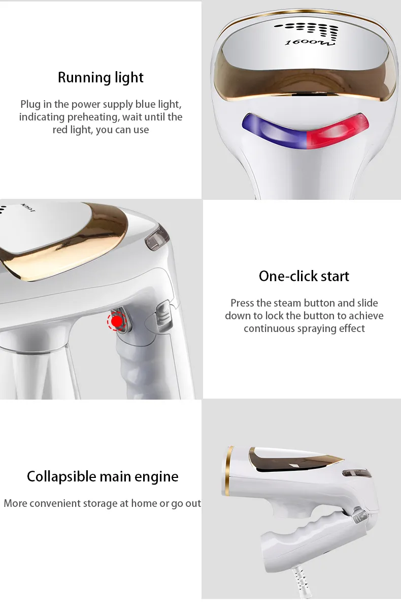 Our Handheld Folding Iron Hanging Machine for Household, a compact and versatile solution for wrinkle-free clothes. With its 1600W power and adjustable temperature settings, it ensures efficient ironing at home or on the go. Its innovative folding design makes storage and transportation effortless. Say goodbye to wrinkles with this convenient steam iron!