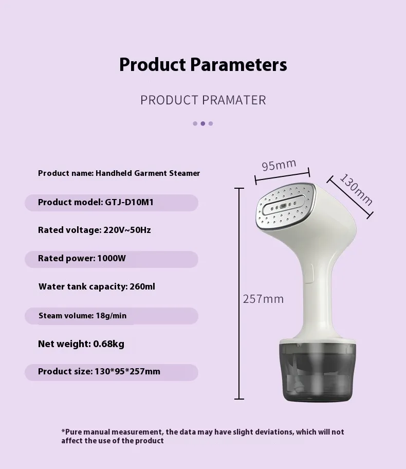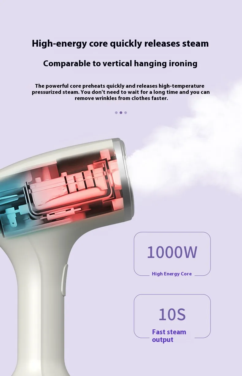 This handheld garment steamer is designed for easy handling and storage. Its compact size makes it perfect for small apartments, hotel rooms, or even your suitcase when traveling. The portable design ensures that you can take it with you wherever you go, making it convenient for business trips, vacations, or daily use at home.