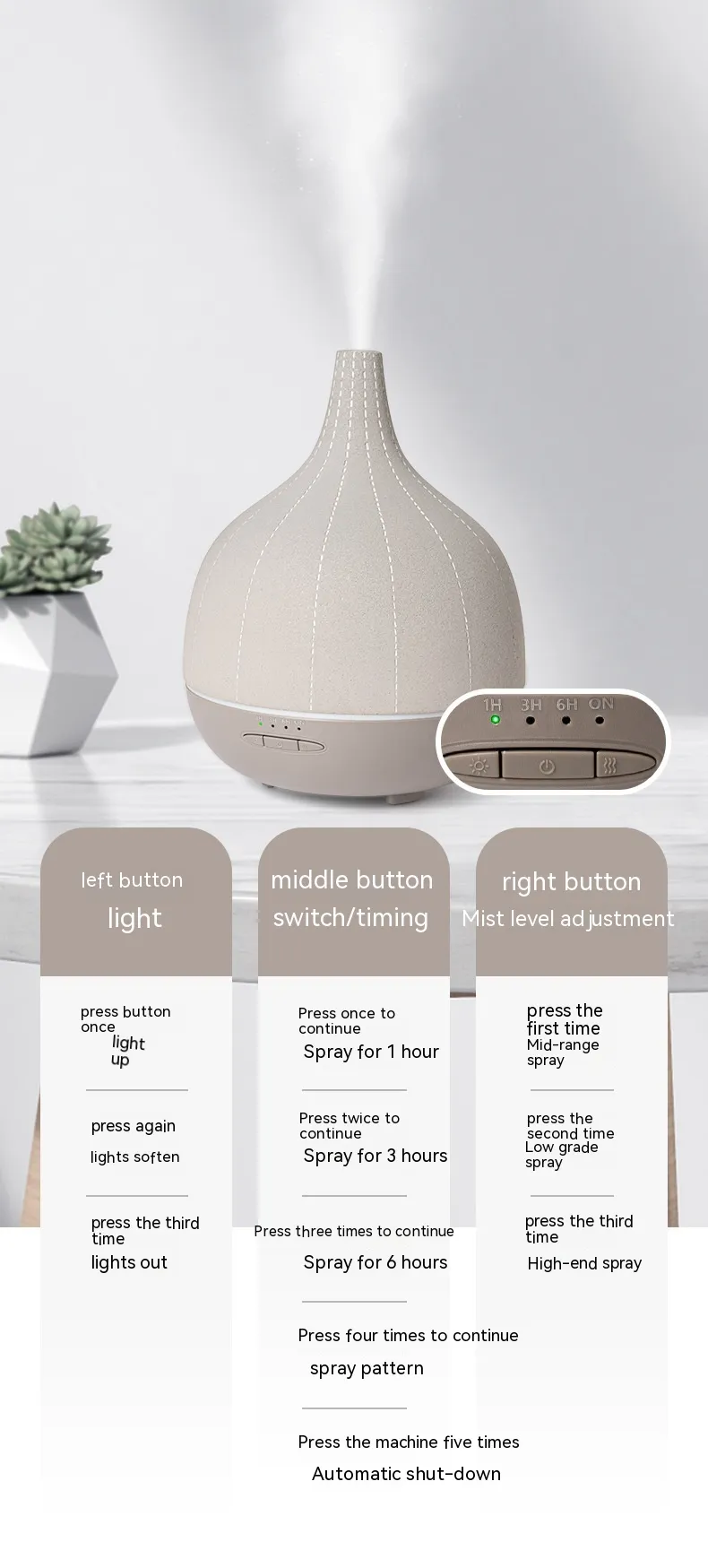Functions: humidification, refreshing, aromatherapy, timing, sleep aid, atomizer, ultrasonic, mute, automatic aerosol distributor, diffusion