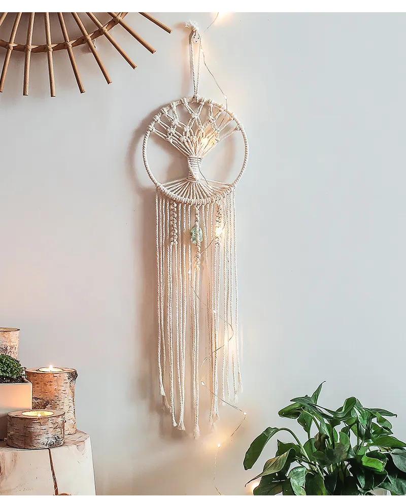 Add a touch of artistry and serenity to your living space with the Handmade Dream Catcher Tree Tapestry, a beautiful fusion of dreamcatcher symbolism and tree-of-life design. This unique tapestry is handcrafted with precision, featuring intricate patterns that blend natural elements with bohemian charm. Ideal for decorating your bedroom, living room, or meditation space, this tapestry creates a calming ambiance while serving as a captivating focal point.