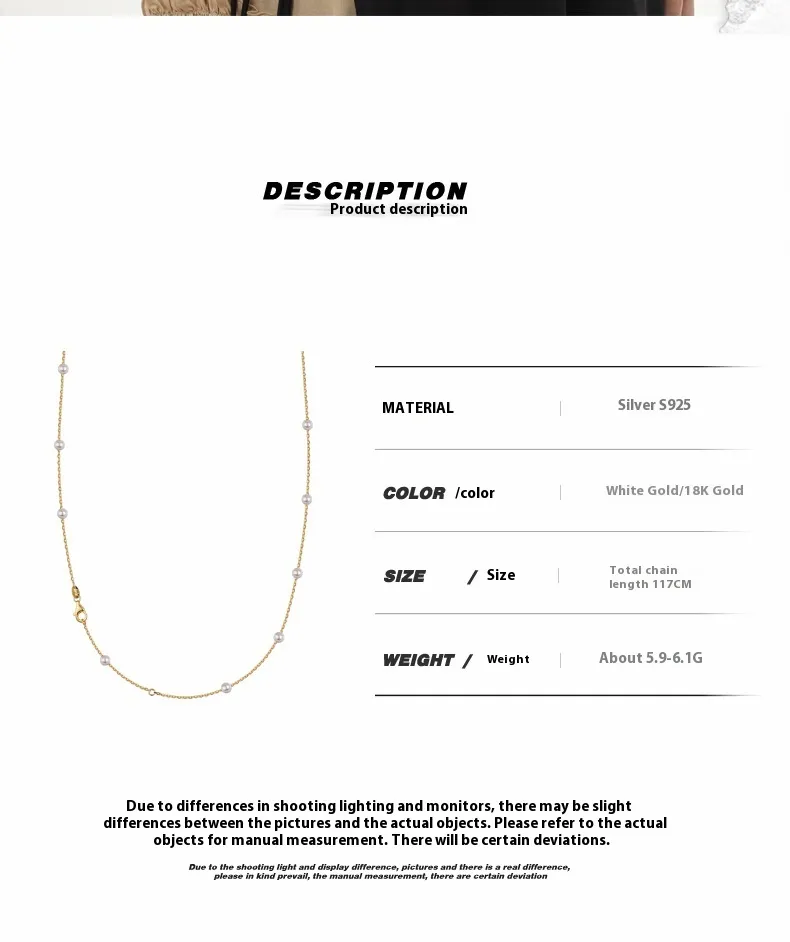 Handmade S925 Sterling Silver Shell Pearls Necklace Twin Beads Sweater Chain