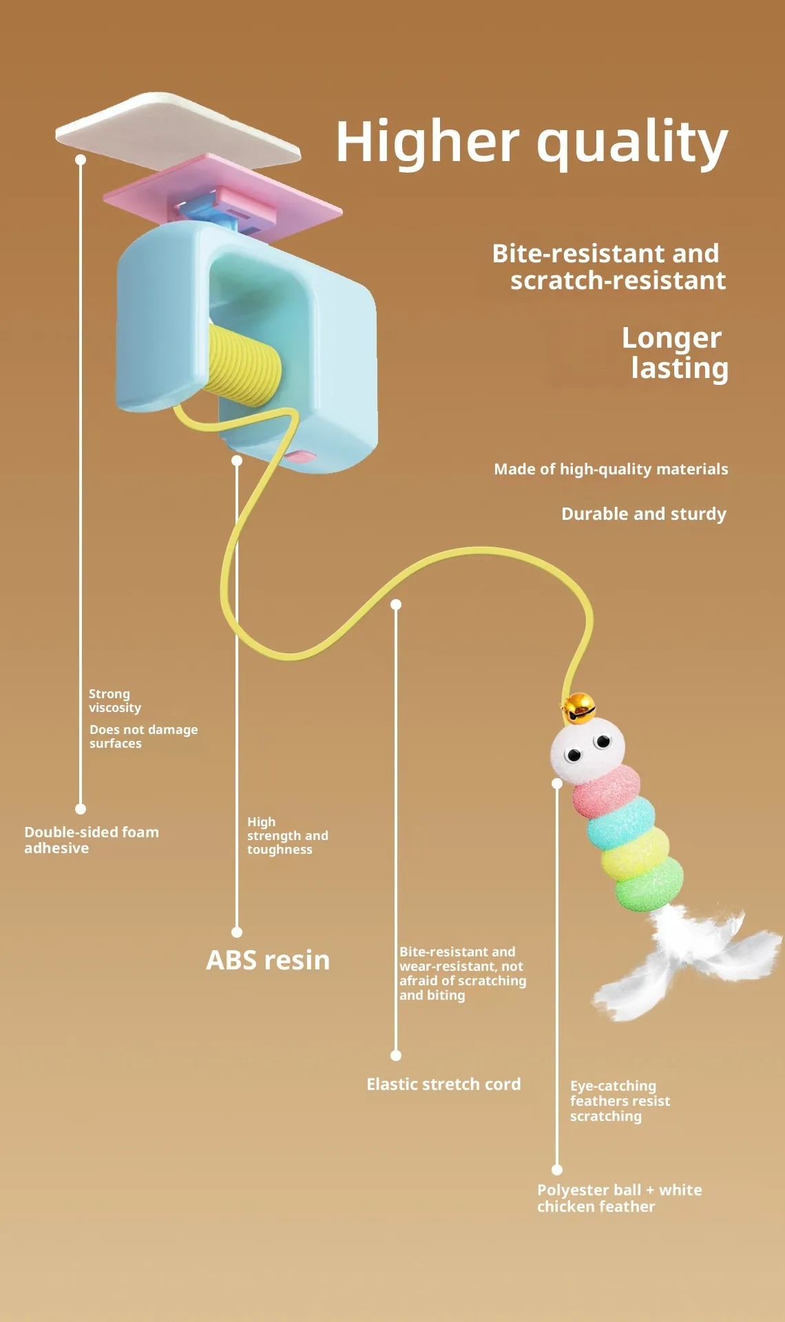 【Interactive Cat Toy for Indoor Cats 】 No More Bored Cats, This interactive cat toy easily attaches to doors, desks, or shelves, creating a swinging, jumping experience that keeps your cat moving. With feathers, bells, and lifelike motion, it mimics real prey and keeps even lazy indoor cats on the prowl.【Realistic Flying Bird Cat Toy Design 】 From fluttering feathers to jingling sounds, the flying bird cat toy replicates natural movement to stimulate your cat’s hunting instincts. The bouncing caterpillar and swinging bird combo are irresistible for curious kittens and adult cats alike. This toy encourages healthy movement and relieves stress. Your cat gets physical exercise and mental stimulation all in one.