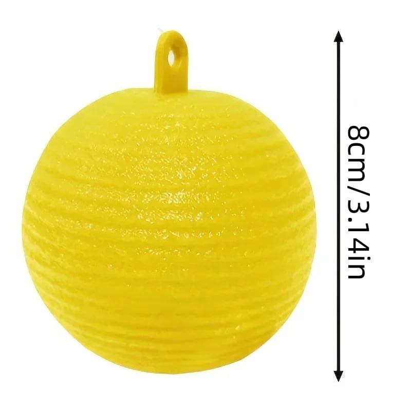 This fly trap features the latest spherical design, with 360-degree coverage and a visual effect that mimics the shape and color of fruit to attract flies.