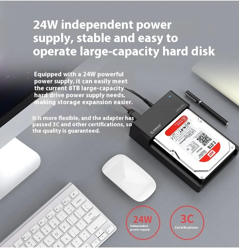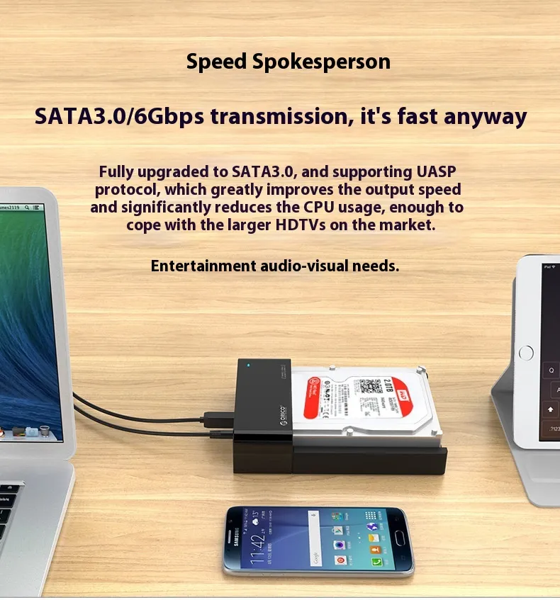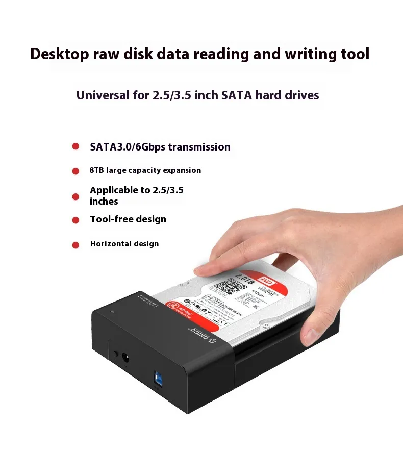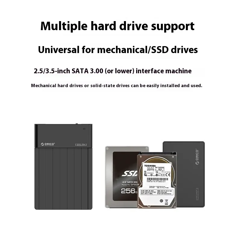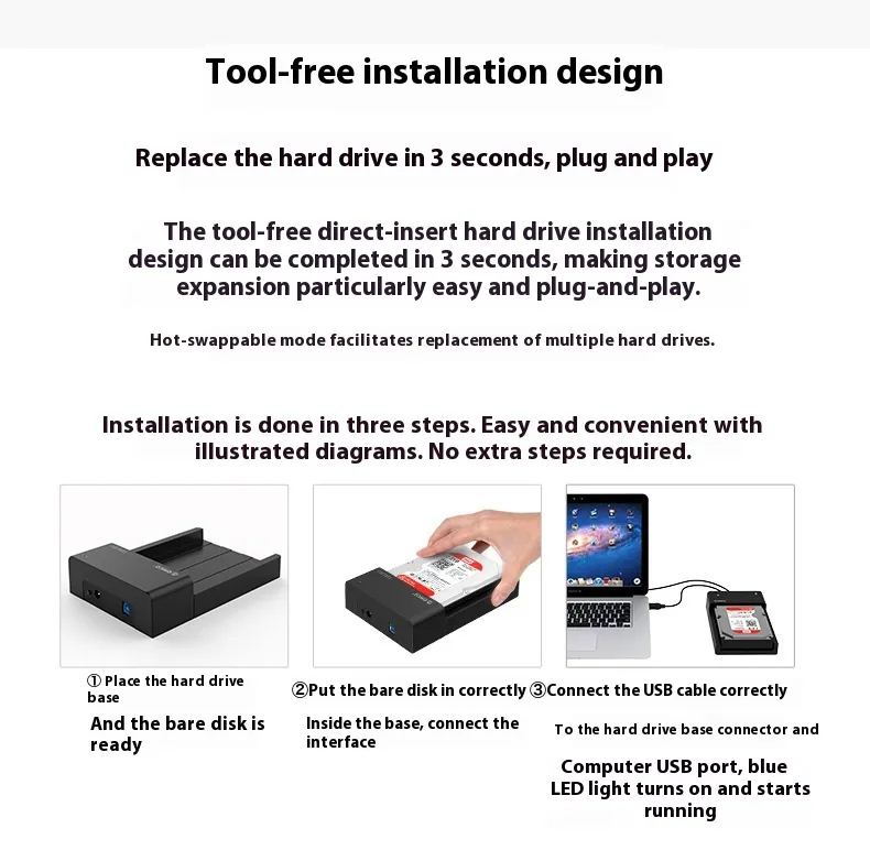 With plug-and-play compatibility, it supports 2.5-inch and 3.5-inch SATA hard disks and SSDs, turning them into a portable external drive instantly. The USB high-speed interface ensures fast data transmission, making it ideal for large file transfers, movies, photos, and work documents.