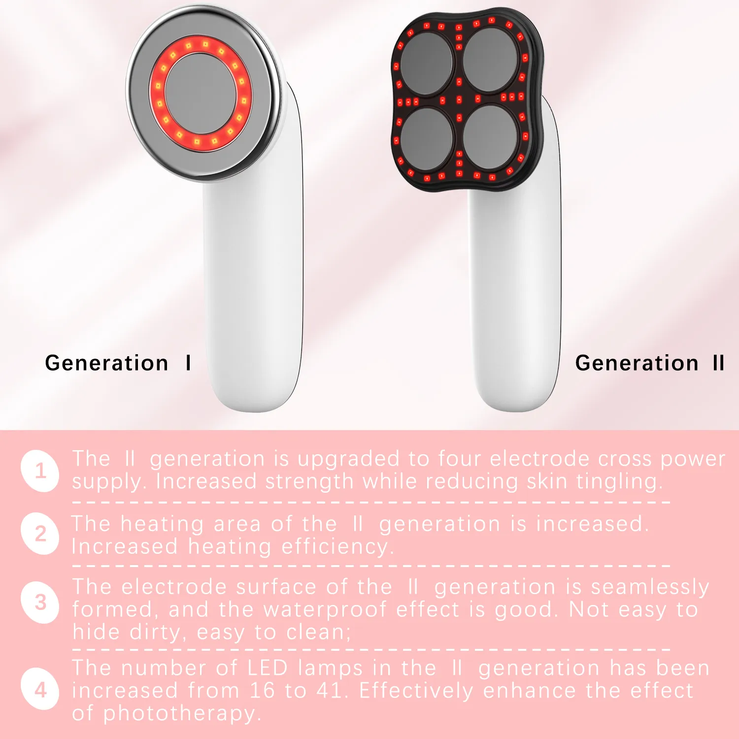 6. Upgraded from 1st Generation: Stronger with reduced tingling, larger heating area, easy to clean, more LED lamps for better phototherapy.