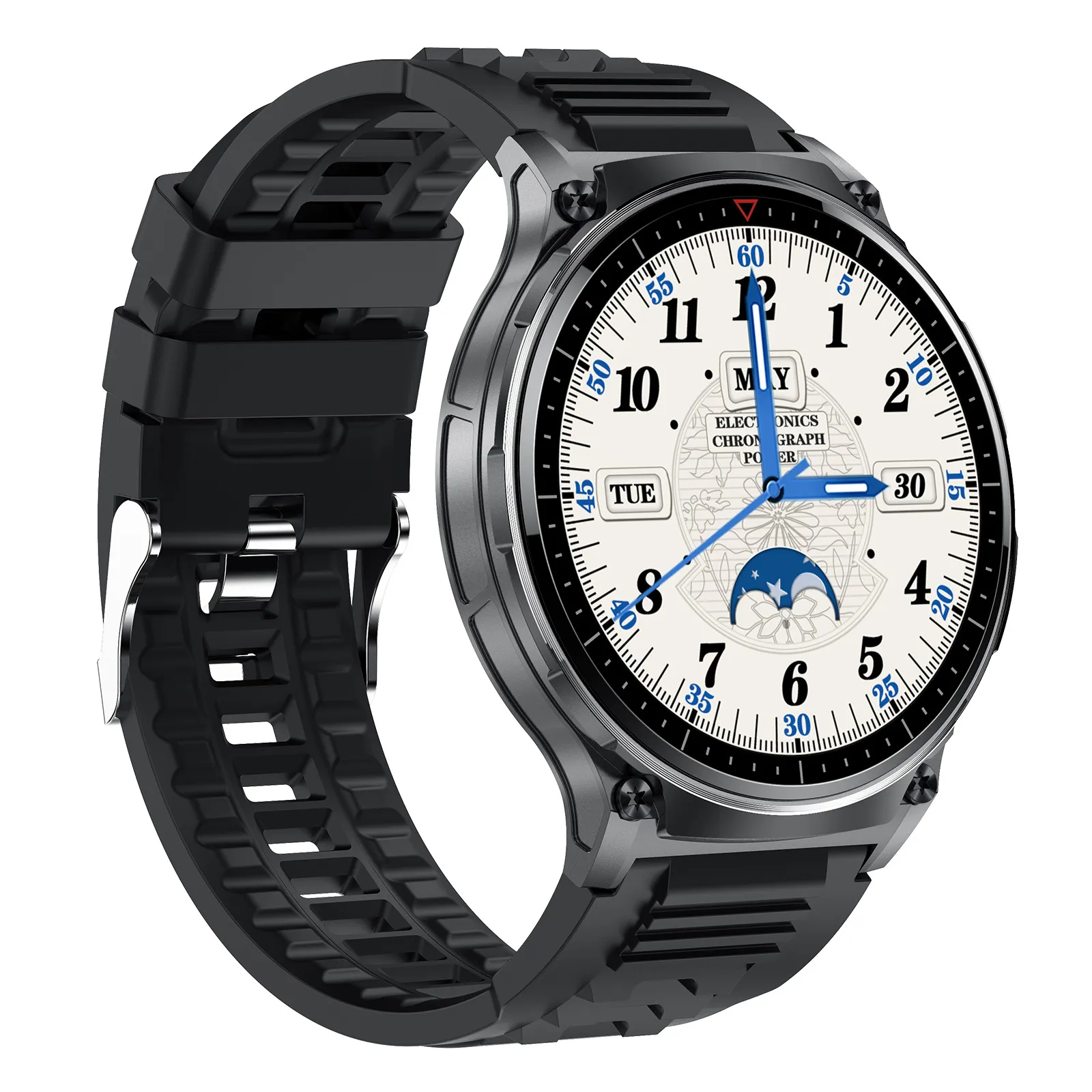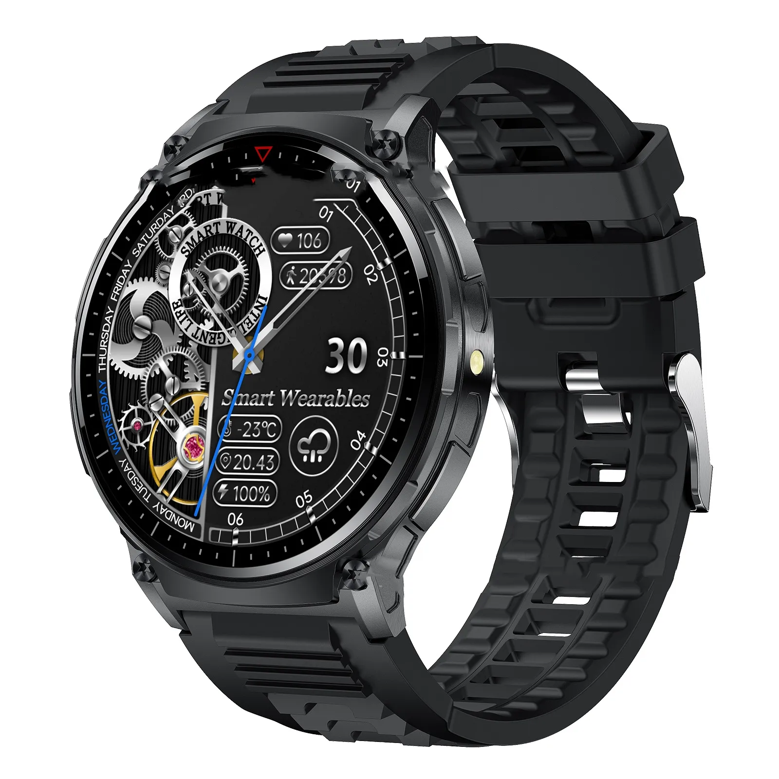 Built to withstand the rigors of outdoor activities, this smart watch offers precise monitoring of your health, fitness, and environmental conditions. It comes equipped with an array of sensors that track heart rate, blood oxygen levels, sleep patterns, calories burned, and even your stress levels. Its rugged design ensures durability, while its lightweight construction offers a comfortable wearing experience, perfect for both everyday use and extreme sports.