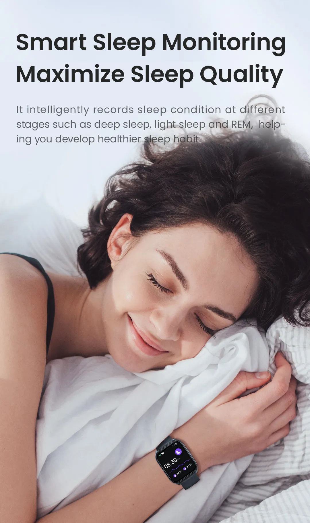 Achieve better rest with detailed insights into your sleep patterns. This smartwatch records your light, deep, and REM sleep stages, offering recommendations to enhance your sleep quality and improve your overall well-being.