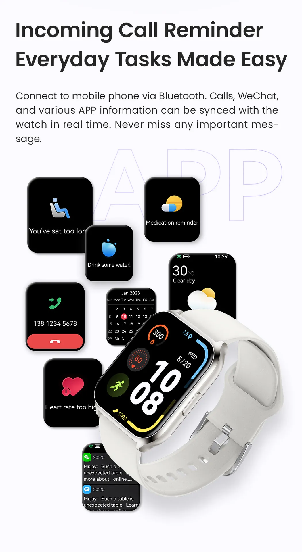- Call and Message Notifications: Receive alerts for calls, texts, and app notifications directly on your wrist.